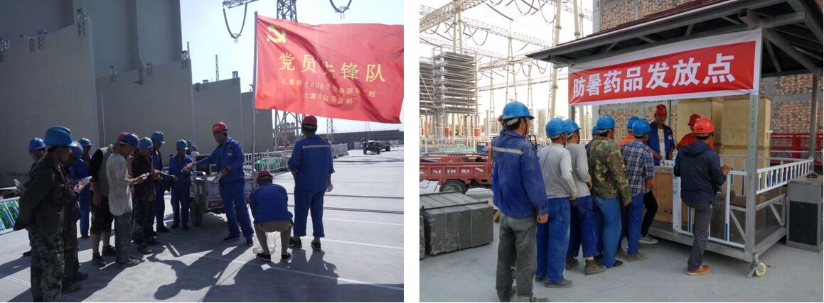 开展“炎炎夏日送清凉活动”。我土建B包施工项目部党员先锋队在项目副经理郝文印的带领下携带清凉物资到工地一线进行慰问送去了党的关怀和问候。为了扎鲁特换流站能早日投运,一线施工的工匠师傅们顶着炎炎烈日,不畏辛苦,衣服湿了又干,干了又湿,黝黑的脸庞被流淌下来的汗水冲出了一条条生活的沟壑。他们是***值得尊重和关怀的人。工匠师傅们收到清凉物资时既惊喜又感动,一位在现场工作的大哥一边喝水一边感慨:“真的谢谢你们党员同志们,谢谢党和人民的关怀,虽然自己带的也有水,但是能喝上党组织上送来的水,感觉心里特别的甜,谢谢党和人民的关怀”。现场的安全专员雷宝同志和顾少强同志一边向工人师傅们发纯净水,一边嘱咐大家工作时要注意安全,注意防暑降温,发放的防暑药品要随身携带。